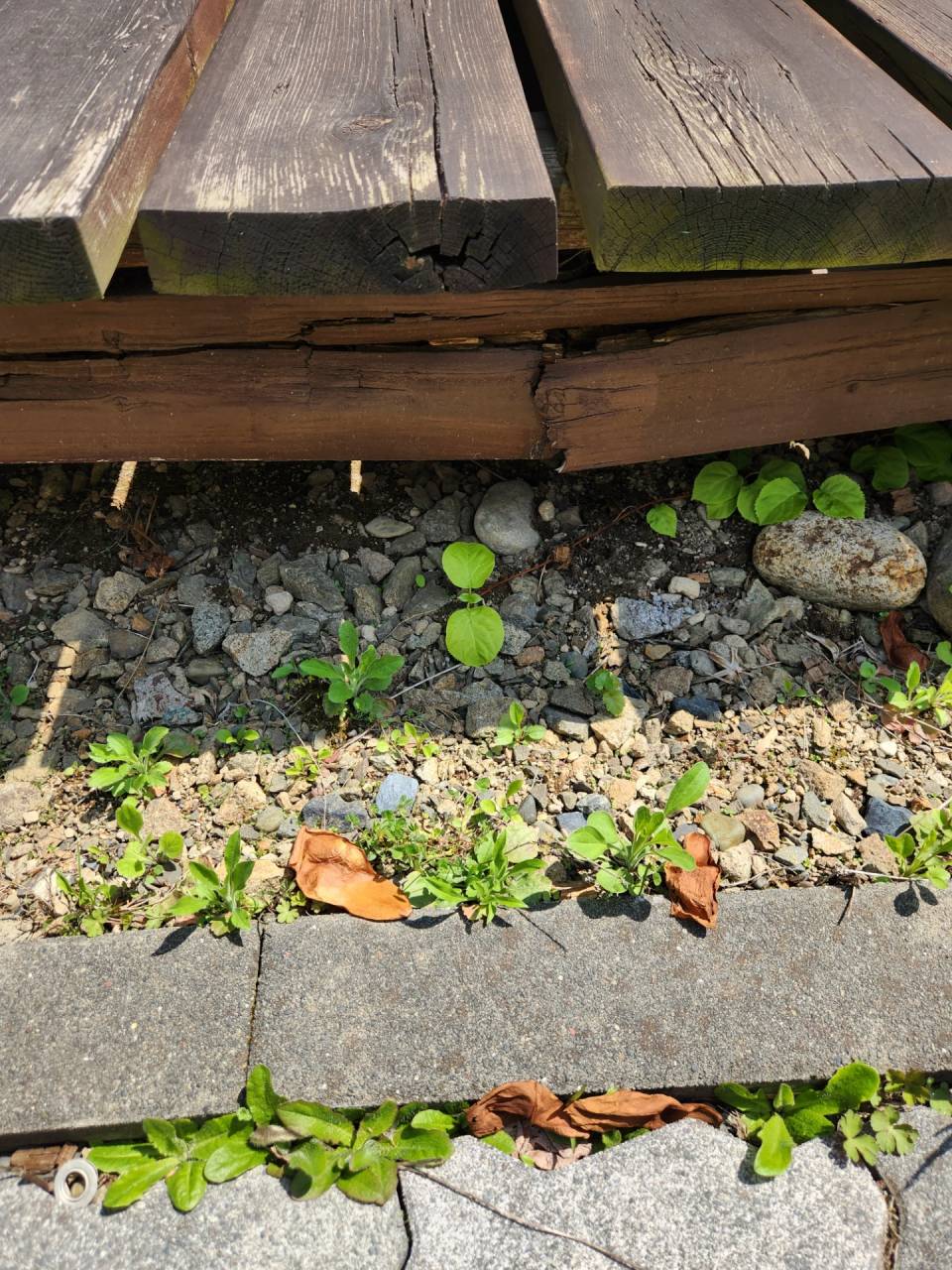 根太が腐食して折れてしまっていますこれでは人が乗るのは危険ですね。ウッドデッキというのは人が上に乗ることを前提として作っているのにこのような状態では使用出来ません。お子さんがいるご家庭では特に注意が必要です!